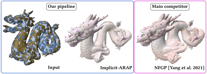 Neural fields have emerged as a powerful representation for 3D geometry, enabling compact and continuous modeling of complex shapes. Despite their expressive power, manipulating neural fields in a controlled and accurate manner – particularly under spatial constraints – remains an open challenge, as existing approaches struggle to balance surface quality, robustness, and efficiency. We address this by introducing a novel method for handle-guided neural field deformation, which leverages discrete local surface representations to optimize the As-Rigid-As-Possible deformation energy. To this end, we propose the local patch mesh representation, which discretizes level sets of a neural signed distance field by projecting and deforming flat mesh patches guided solely by the SDF and its gradient. We conduct a comprehensive evaluation showing that our method consistently outperforms baselines in deformation quality, robustness, and computational efficiency. We also present experiments that motivate our choice of discretization over marching cubes. By bridging classical geometry processing and neural representations through local patch meshing, our work enables scalable, high-quality deformation of neural fields and paves the way for extending other geometric tasks to neural domains.