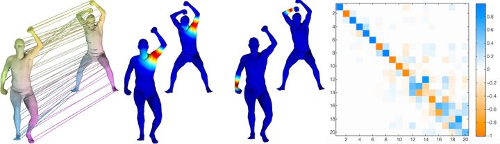 Notions of similarity and correspondence between geometric shapes and images are central to many tasks in geometry processing, computer vision, and computer graphics. The goal of this course is to familiarize the audience with a set of recent techniques that greatly facilitate the computation of mappings or correspondences between geometric datasets, such as 3D shapes or 2D images by formulating them as mappings between functions rather than points or triangles. Methods based on the functional map framework have recently led to state-of-the-art results in problems as diverse as non-rigid shape matching, image co-segmentation and even some aspects of tangent vector field design. One challenge in adopting these methods in practice, however, is that their exposition often assumes a significant amount of background in geometry processing, spectral methods and functional analysis, which can make it difficult to gain an intuition about their performance or about their applicability to real-life problems. In this course, we try to provide all the tools necessary to appreciate and use these techniques, while assuming very little background knowledge. We also give a unifying treatment of these techniques, which may be difficult to extract from the individual publications and, at the same time, hint at the generality of this point of view, which can help tackle many problems in the analysis and creation of visual content. This course is structured as a half day course. We will assume that the participants have knowledge of basic linear algebra and some knowledge of differential geometry, to the extent of being familiar with the concepts of a manifold and a tangent vector space. We will discuss in detail the functional approach to finding correspondences between non-rigid shapes, the design and analysis of tangent vector fields on surfaces, consistent map estimation in networks of shapes and applications to shape and image segmentation, shape variability analysis, and other areas.